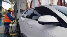 | Dirut PLN Menguji Mobil Listrik di Rest Area 626B Saradan, Pastikan Perbaikan Layanan SPKLU Direktur Utama PLN, Darmawan Prasodjo (kiri) didampingi General Manager PLN Unit Induk Distribusi Jawa Timur, Agus Kuswardoyo (kanan) melakukan ...